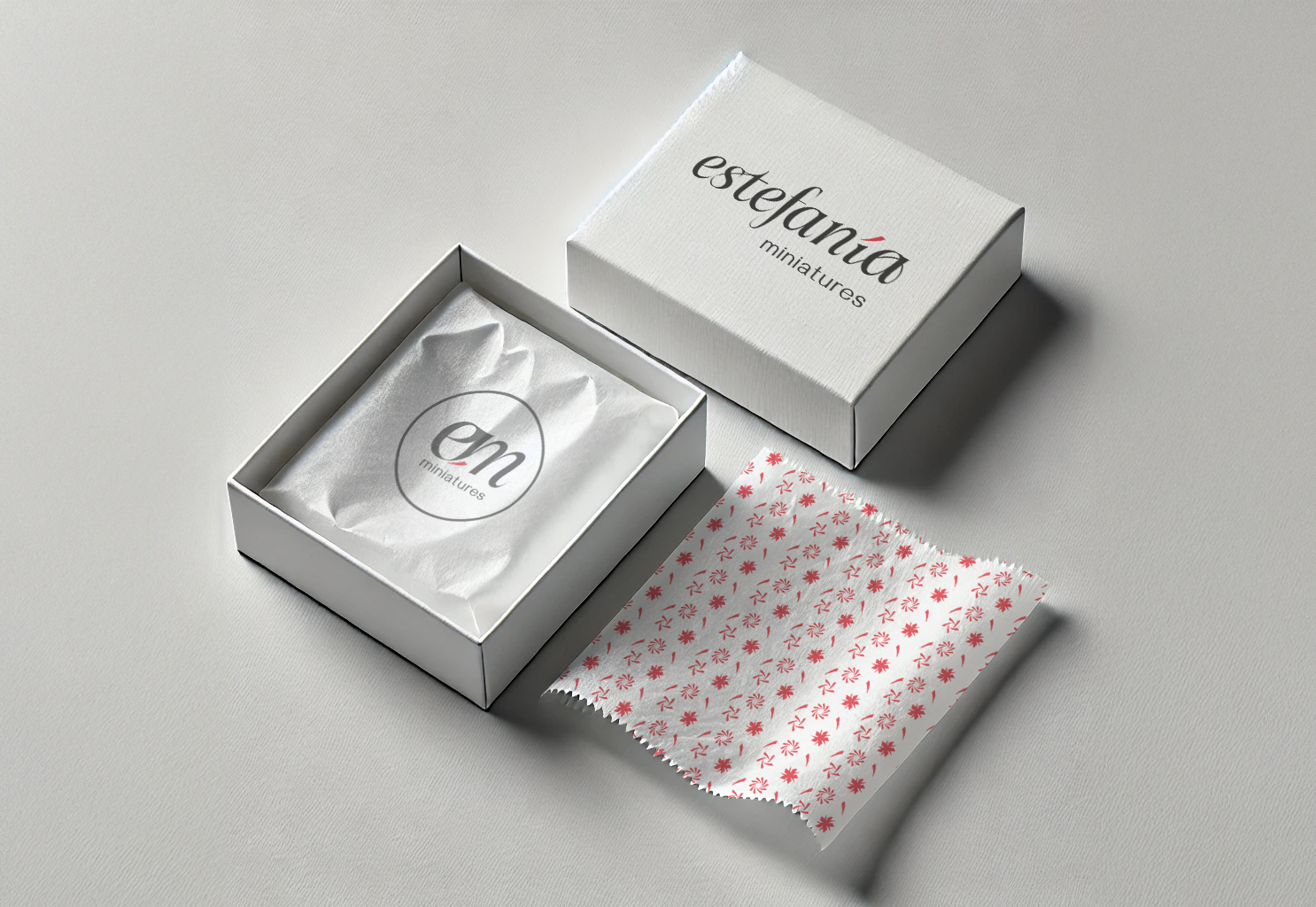 Diseño de identidad para Estefanía Miniatures. Diseño de marca para una artista especializada en miniaturas hechas a mano. La identidad se construye a partir del elemento más pequeño del nombre, ”la tilde”, utilizado como símbolo de precisión y detalle. Un sistema gráfico delicado y funcional que refleja la sensibilidad, la calma y el cuidado presentes en cada una de sus creaciones.